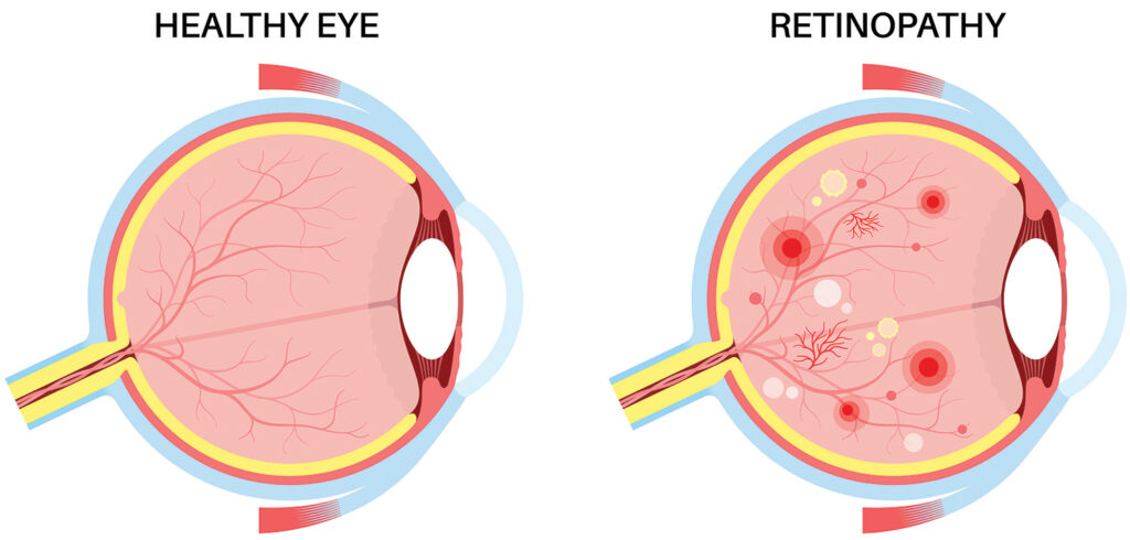 Diabetic retinopathy can cause visual loss by swelling in the retina or new blood vessels that are abnormal and have the potential for bleeding in the eye. Fortunately, if detected early enough, these problems can be slowed or cured by laser treatment procedures to the eyes. If laser treatment is not effective, surgery can often help. The main thing to understand here is that diabetics need to have regular eye exams with an ophthalmologist. Some of the findings in this disease may occur long before visual loss or other symptoms. It is then that treatment is most effective. If a diabetic waits until he or she has loss of vision to be examined then it may be too late at that time to effectively restore the vision.