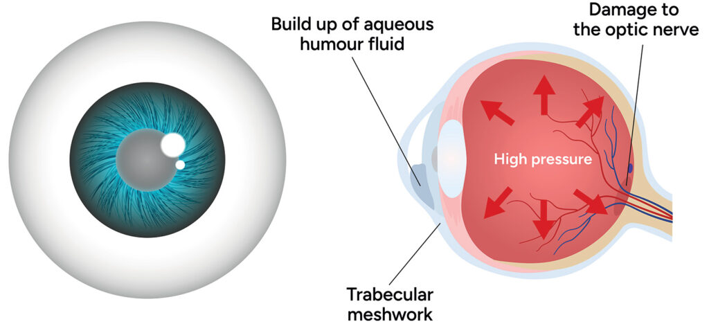 Glaucoma is a very complex group of conditions which cause progressive damage to the optic nerve. The result is lost vision, first in the peripheral visual field and ultimately in the central vision in severe cases. It is thought that in most glaucoma conditions the injury to the optic nerve is caused by high eye pressure.